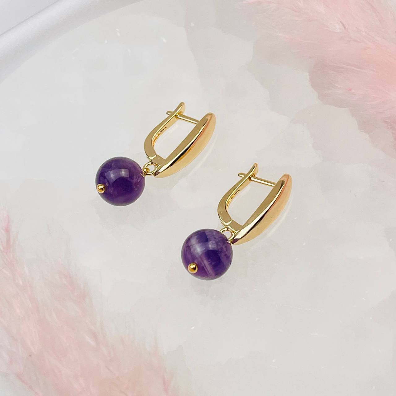 Цвет камня: Фиолетовый Месторожде..показатьние: Бразилия Камень: Аметист Покрытие: Золото 18К Диаметр: 10 мм Поверхность: Гладкий Производитель: Радуга Самоцветов (Россия) Тип швензы: Английский замокние: Бразилия