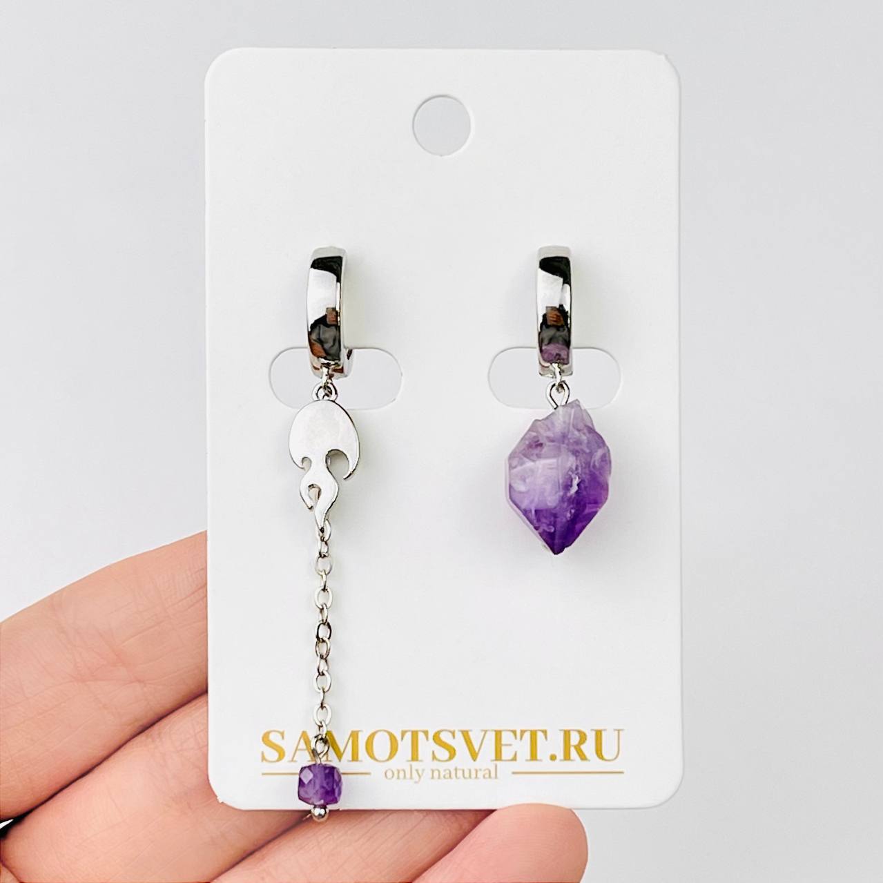 Цвет камня: Фиолетовый Месторожде..показатьние: Бразилия Камень: Аметист Покрытие: Родий (покр) Длина сережки: 60 мм Поверхность: Граненный/Необработанный Размер: 11х13 мм Производитель: Радуга Самоцветов (Россия) Тип швензы: Конгоние: Бразилия