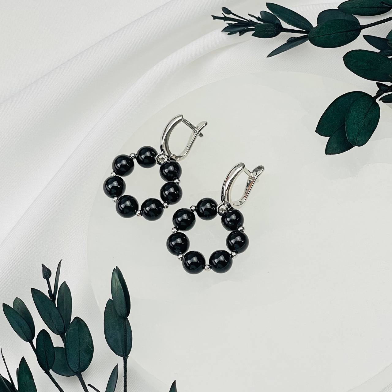 Радуга Самоцветов Серьги из черного Турмалина (Шерл)