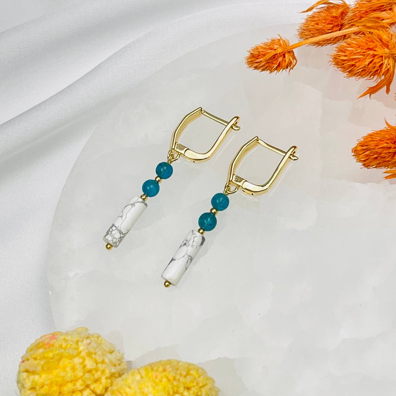 Радуга Самоцветов Серьги из Говлита и Апатита