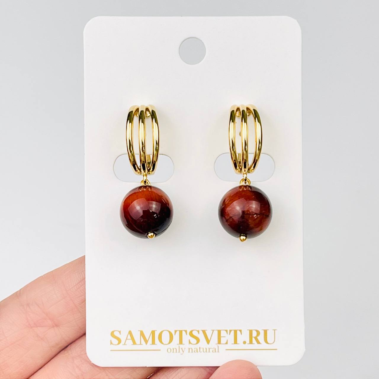 Радуга Самоцветов Серьги из камня Бычий глаз