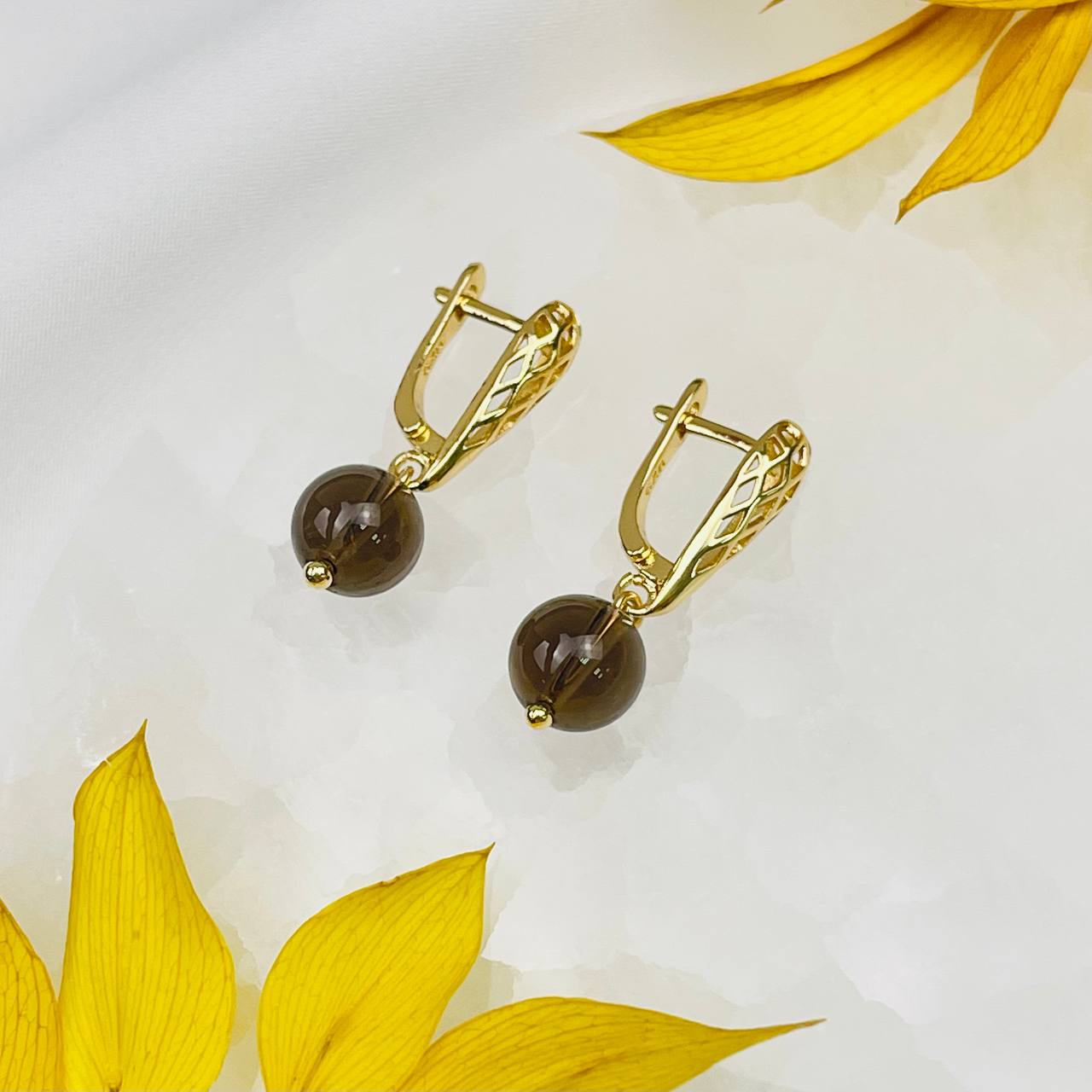 Цвет камня: Коричневый Месторожде..показатьние: Бразилия Камень: Раухтопаз Покрытие: Золото 18К Диаметр: 8,5 мм Поверхность: Гладкий Производитель: Радуга Самоцветов (Россия) Тип швензы: Английский замокние: Бразилия