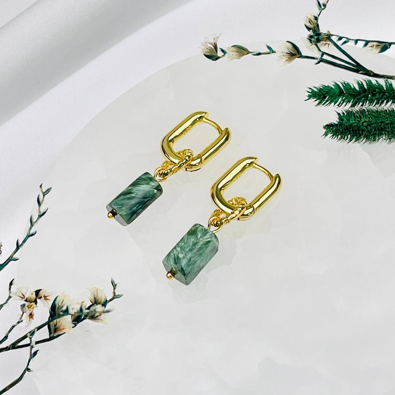 Радуга Самоцветов Серьги из камня Серафинит