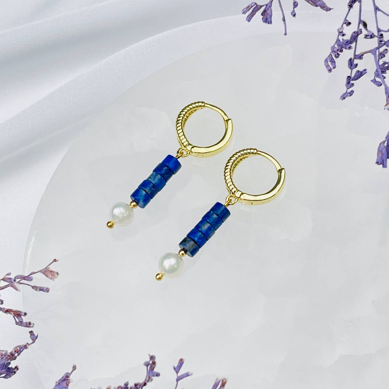 Радуга Самоцветов Серьги из Лазурита и Жемчуга