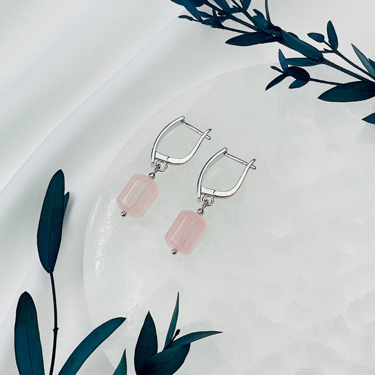 Радуга Самоцветов Серьги из мадагаскарского Розового кварца