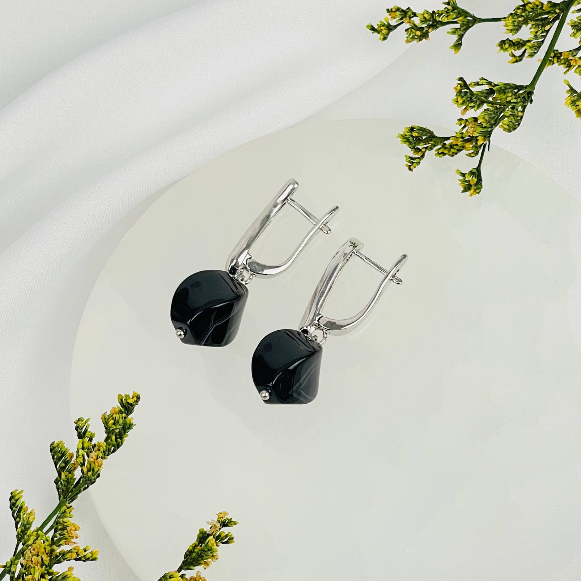 Цвет камня: Чёрный Месторождение:..показать Бразилия Камень: Агат Покрытие: Родий (покр) Поверхность: Гладкий/Граненый Размер: 11х13 мм Производитель: Радуга Самоцветов (Россия) Тип швензы: Английский замок Бразилия