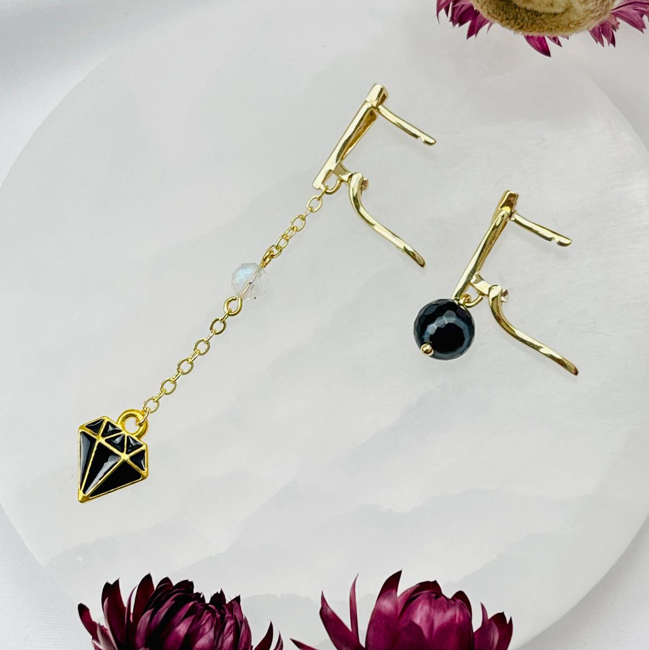 Радуга Самоцветов Серьги из полосатоо Агата и Лунного камня