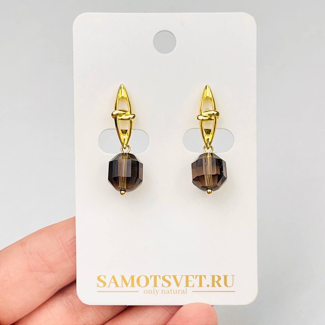 Цвет камня: Коричневый Месторожде..показатьние: Бразилия Камень: Раухтопаз Покрытие: Золото 18К Поверхность: Граненый Размер: 9х10 мм Производитель: Радуга Самоцветов (Россия) Тип швензы: Английский замокние: Бразилия