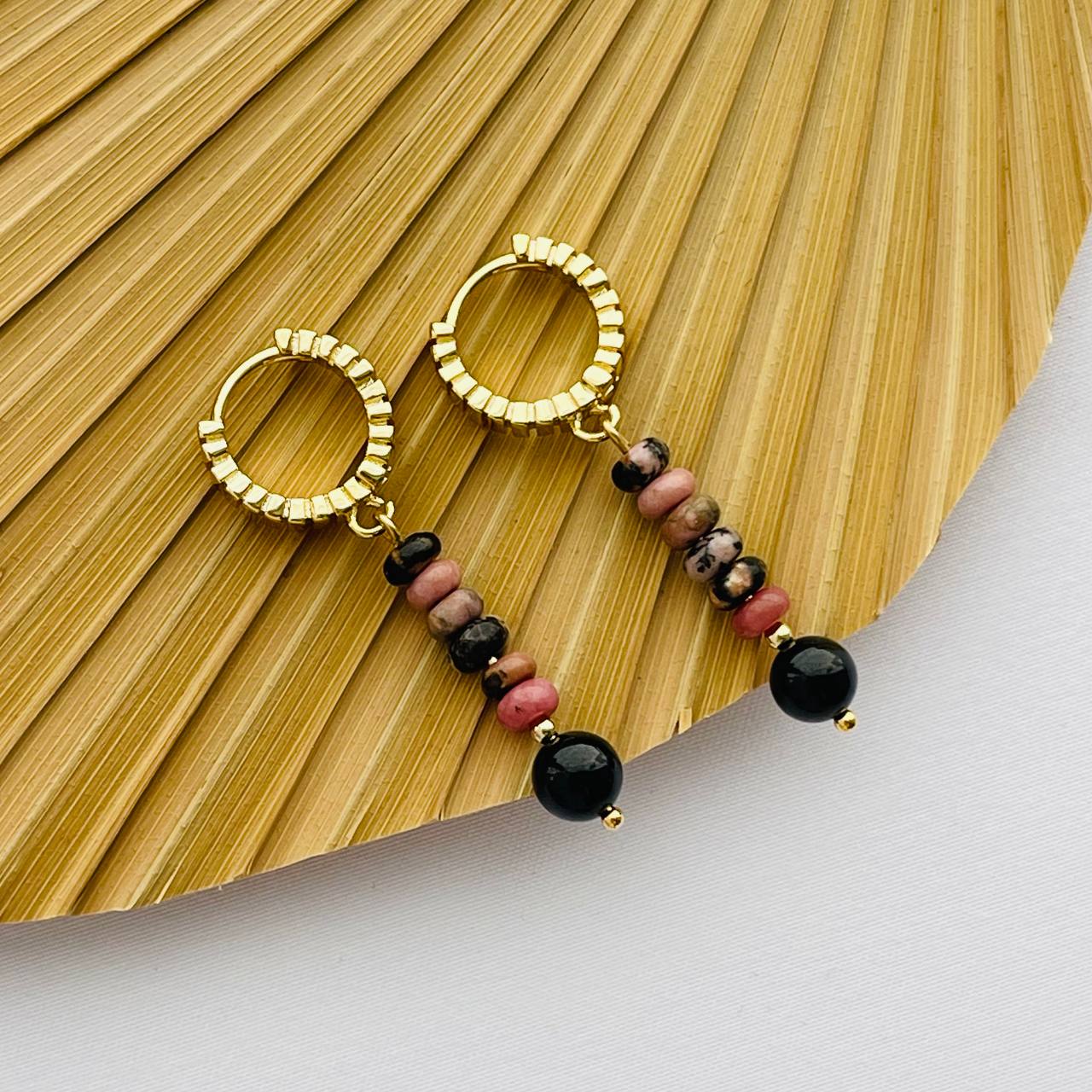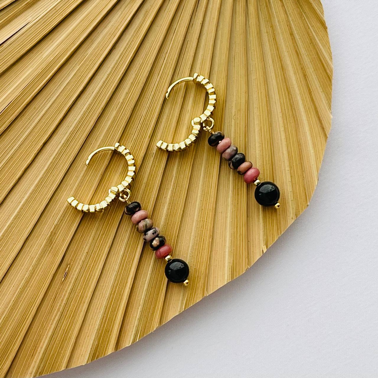 Радуга Самоцветов Серьги из Родонита и черного Турмалина