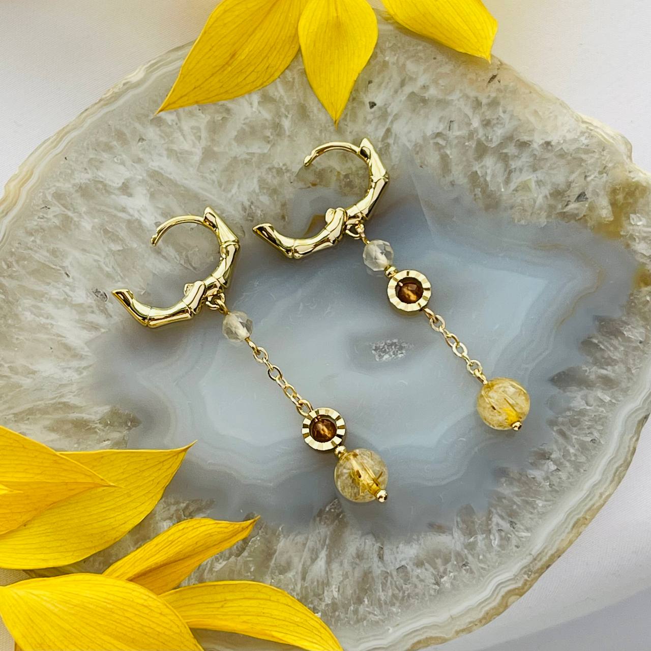 Радуга Самоцветов Серьги из Рутилового кварца, Граната "спессартин" и Горного Хрусталя