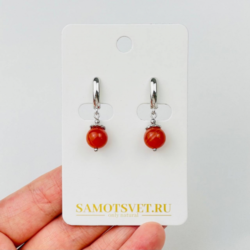 Цвет камня: Коньячный Месторожден..показатьие: Бразилия Камень: Сардоникс Покрытие: Родий (покр) Диаметр: 8,5 мм Поверхность: Гладкий Производитель: Радуга Самоцветов (Россия) Тип швензы: Английский замокие: Бразилия