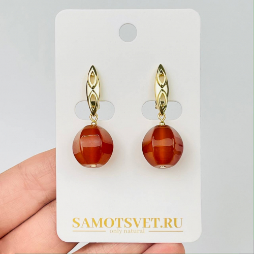 Цвет камня: Коньячный Месторожден..показатьие: Бразилия Камень: Сердолик Покрытие: Золото 18К Поверхность: Граненый Размер: 13х14 мм Производитель: Радуга Самоцветов (Россия) Тип швензы: Английский замокие: Бразилия