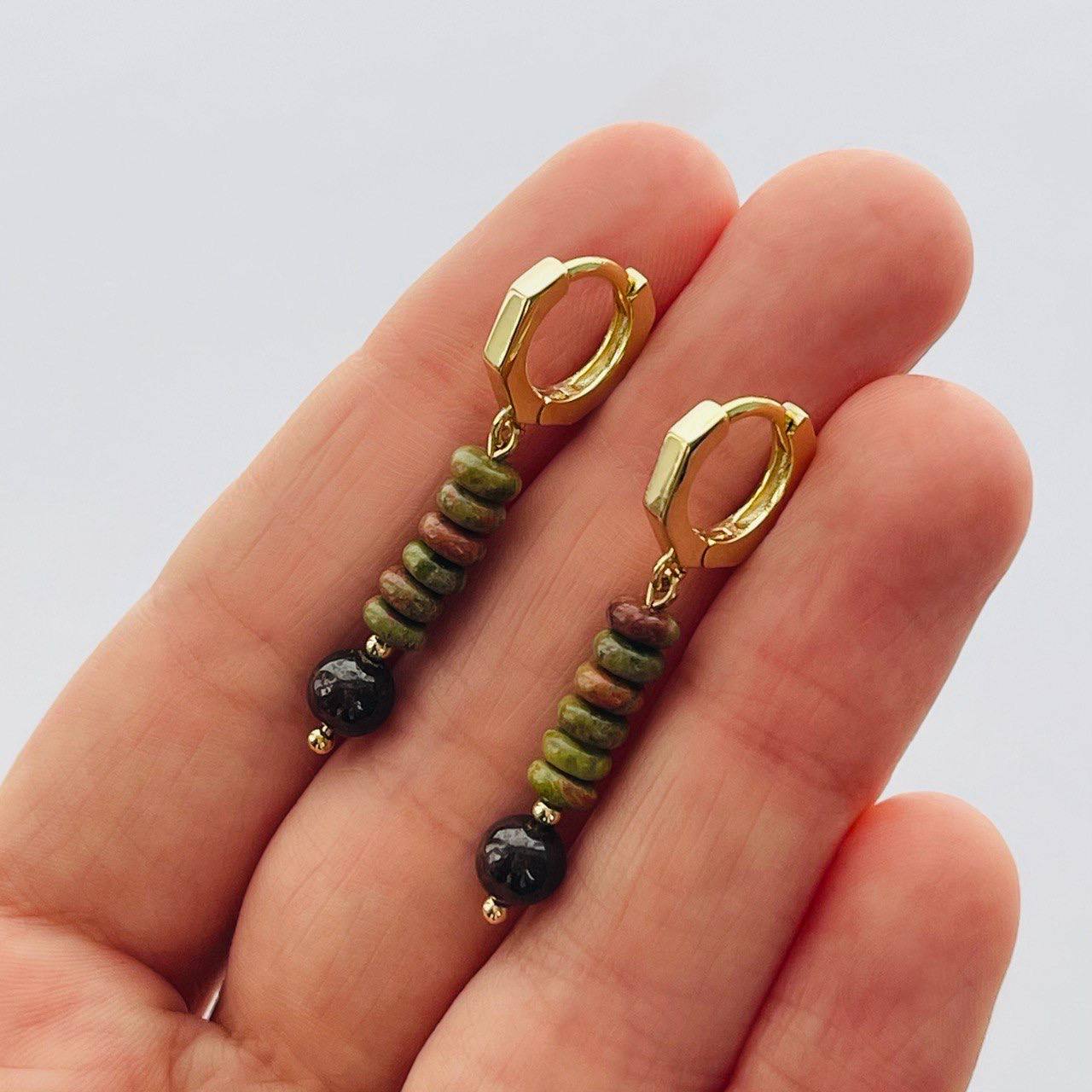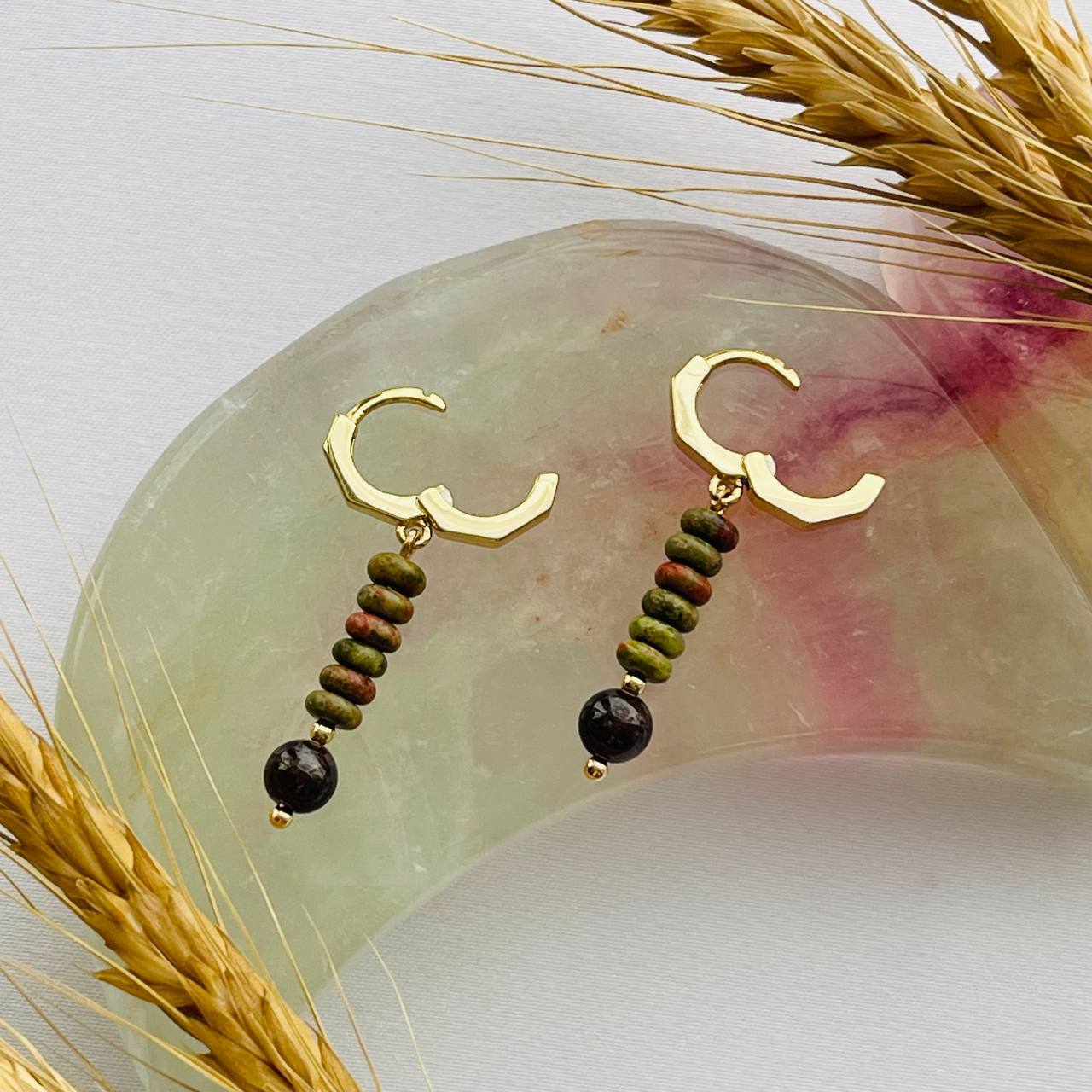 Радуга Самоцветов Серьги из Унакита с Гранатом