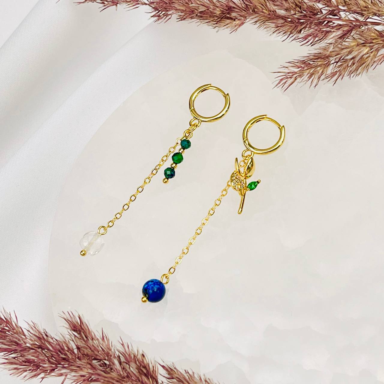 Радуга Самоцветов Серьги на цепочке из Азурита и Горного Хрусталя