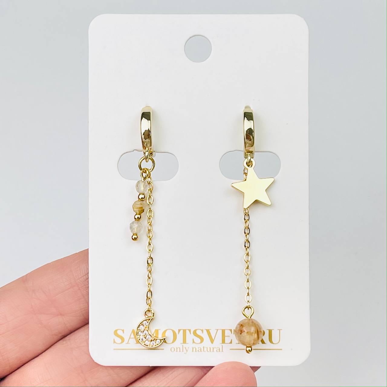 Радуга Самоцветов Серьги на цепочке из камня Рутиловый кварц "Волосатик"