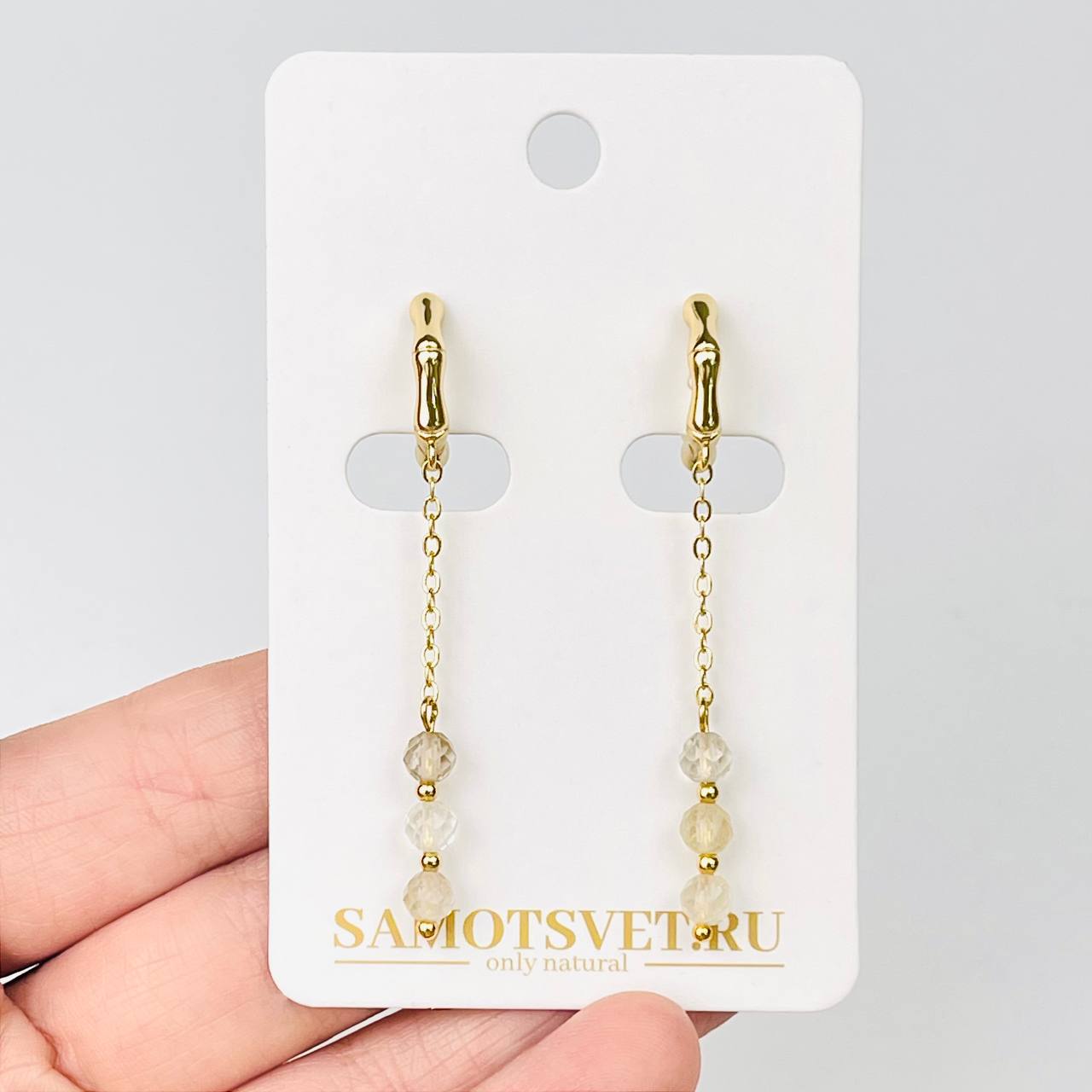 Радуга Самоцветов Серьги на цепочке из Рутилового кварца "Волосатик"