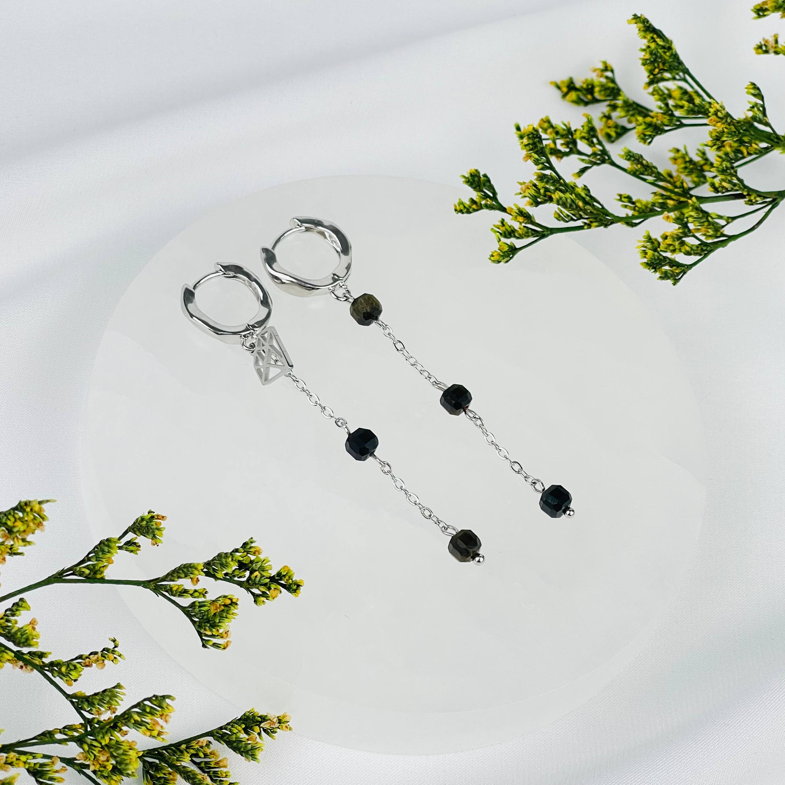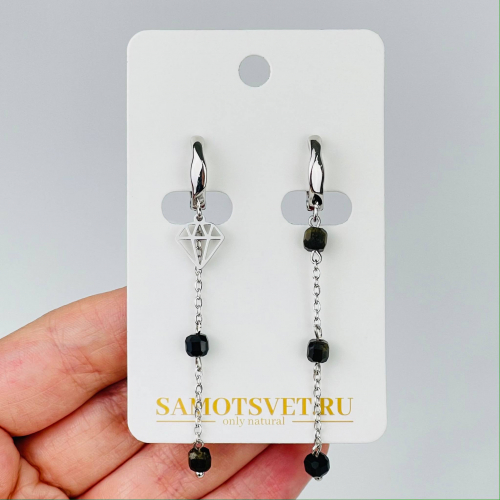 Радуга Самоцветов Серьги на цепочке из золотистого Обсидиана