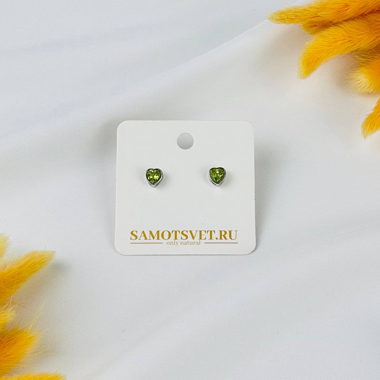 Радуга Самоцветов Серьги-пусеты с Хризолитом