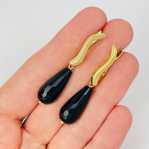 Цвет камня: Чёрный Месторождение:..показать Бразилия Камень: Агат Покрытие: Золото 18К Поверхность: Граненый Размер: 10х20 мм Производитель: Радуга Самоцветов (Россия) Тип замка: Карабин с цепочкой Бразилия