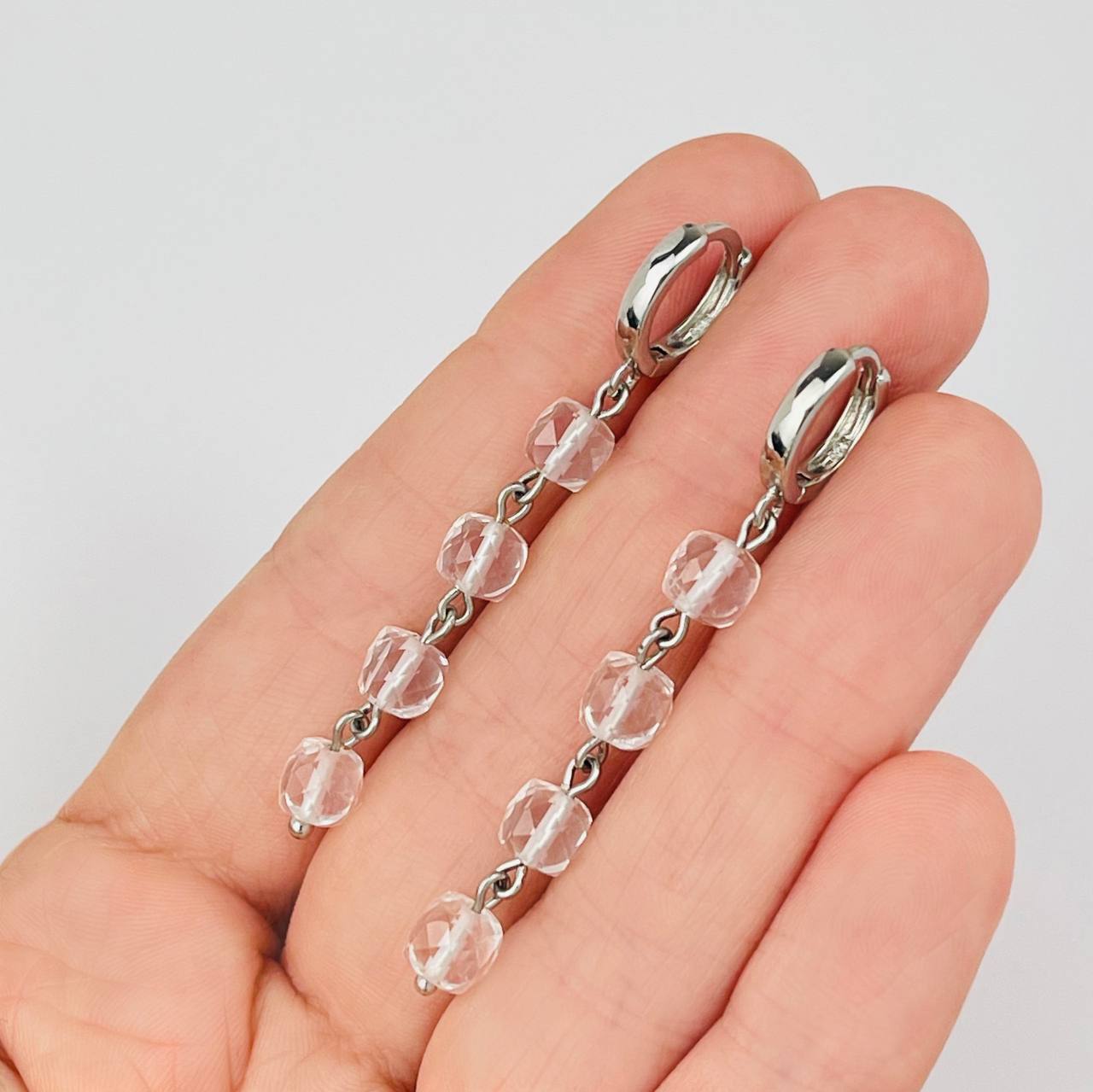 Цвет камня: Прозрачный Месторожде..показатьние: Бразилия Камень: Горный хрусталь Покрытие: Родий (покр) Длина сережки: 55 мм Поверхность: Граненый Размер: 5х5 мм Производитель: Радуга Самоцветов (Россия) Тип швензы: Кольцевой замокние: Бразилия