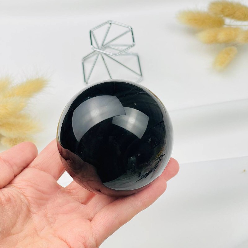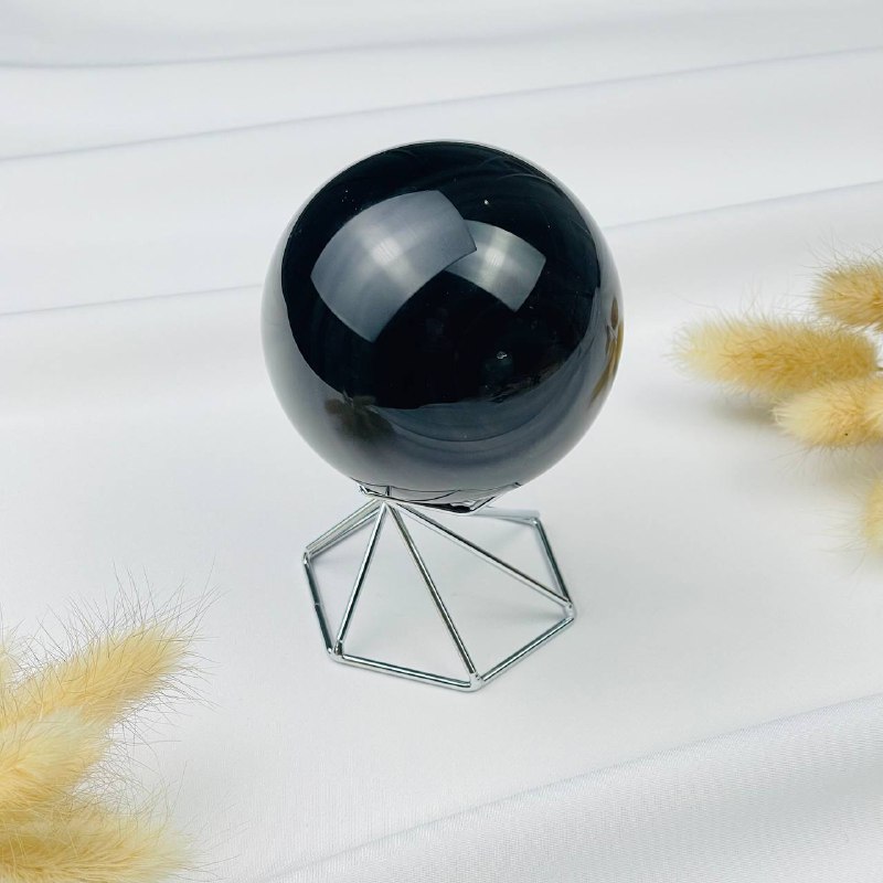 Радуга Самоцветов Шар декоративный резной из камня Обсидиан серебристый