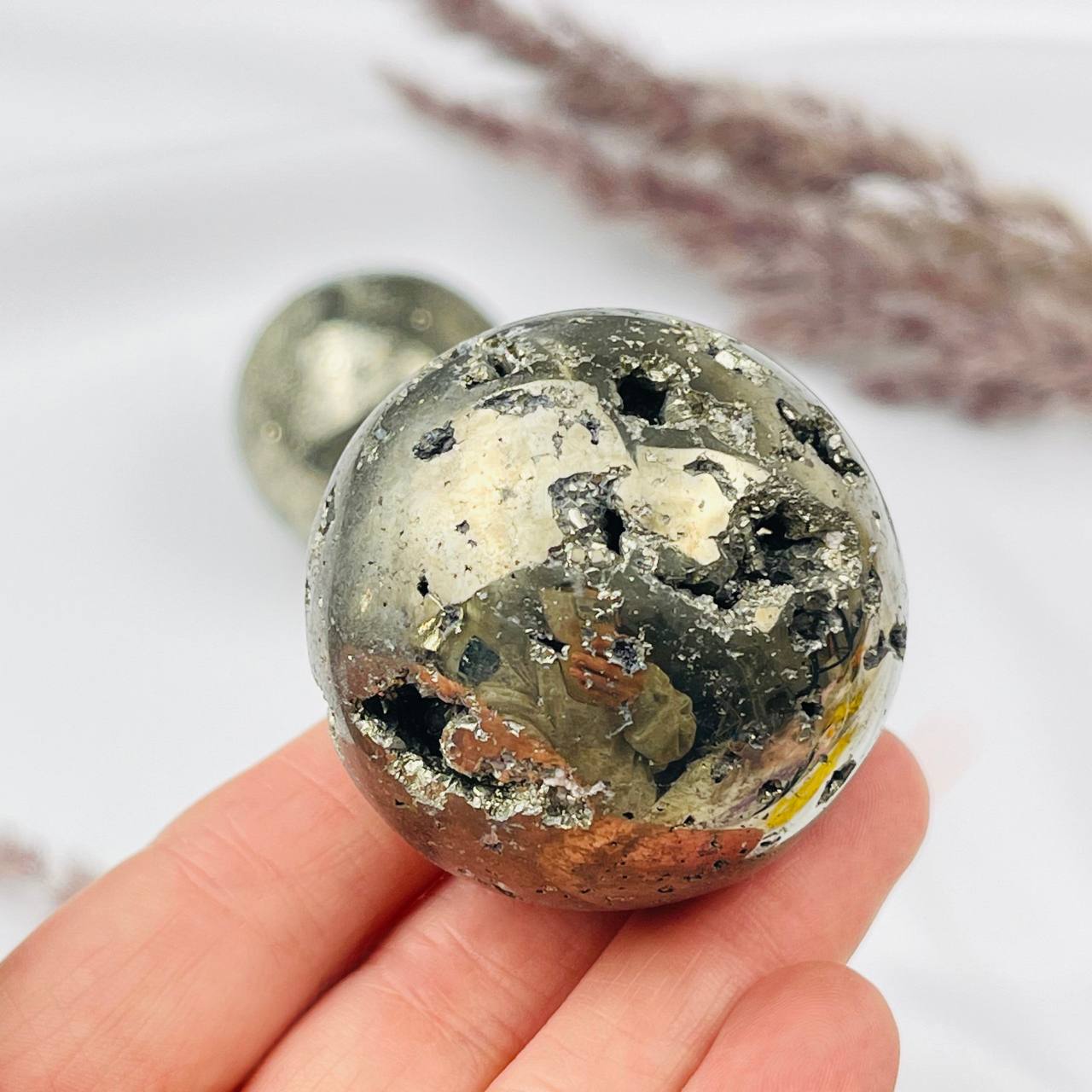 Цвет камня: Бронзовый Месторожден..показатьие: Перу Камень: Пирит Диаметр: 44 мм Поверхность: Гладкий/Необработанныйие: Перу