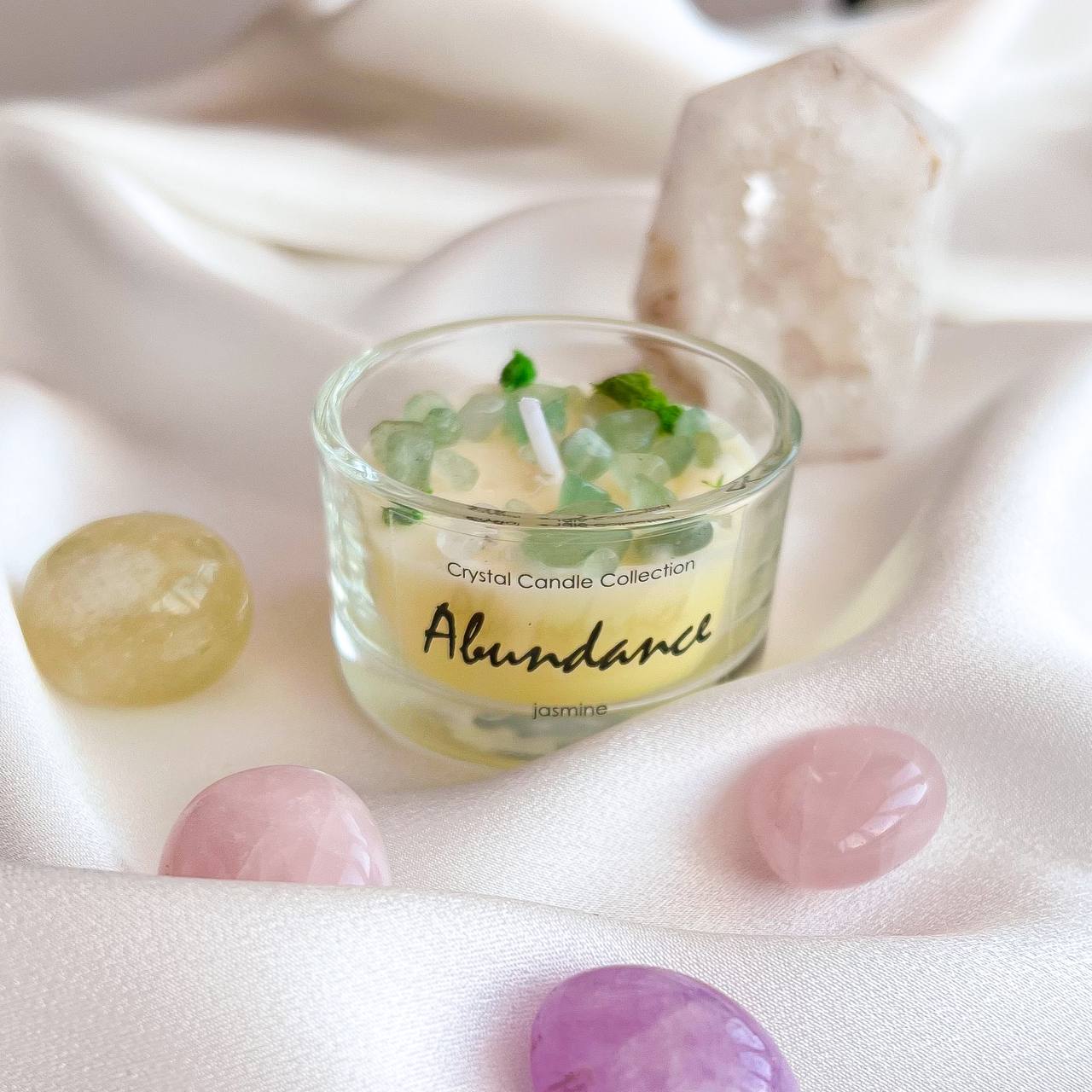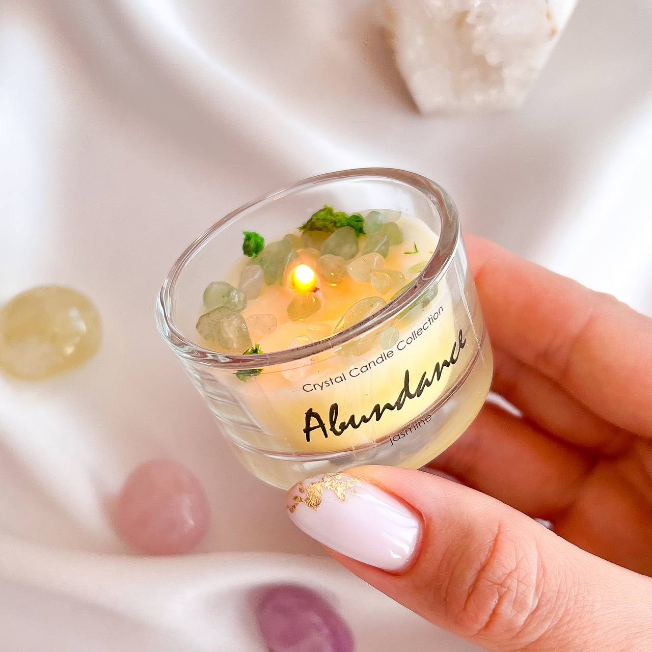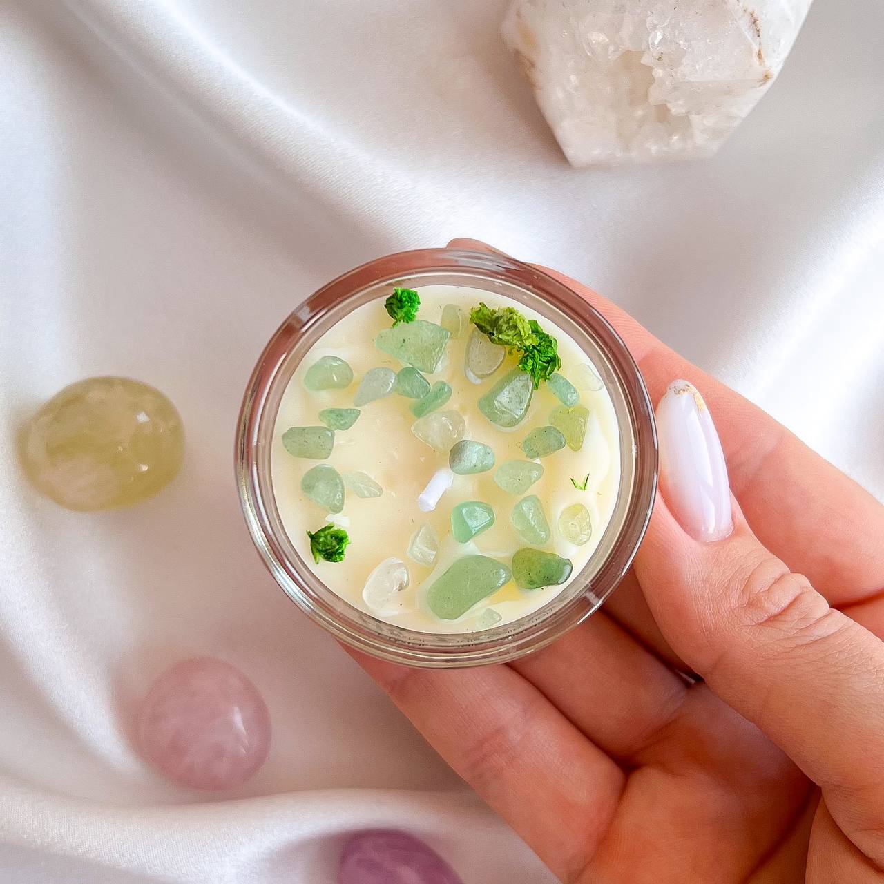 Радуга Самоцветов Свеча Abundance "Благосостояние" зеленый Авантюрин,Жасмин (финансовое благополучие)