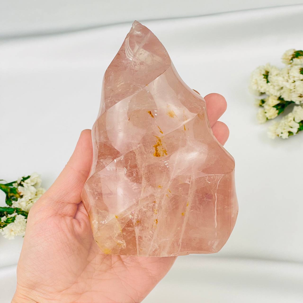 Цвет камня: Розовый Месторождение..показать: Бразилия Камень: Розовый кварц Поверхность: Гладкий/Граненый Размер: 9х13 см: Бразилия