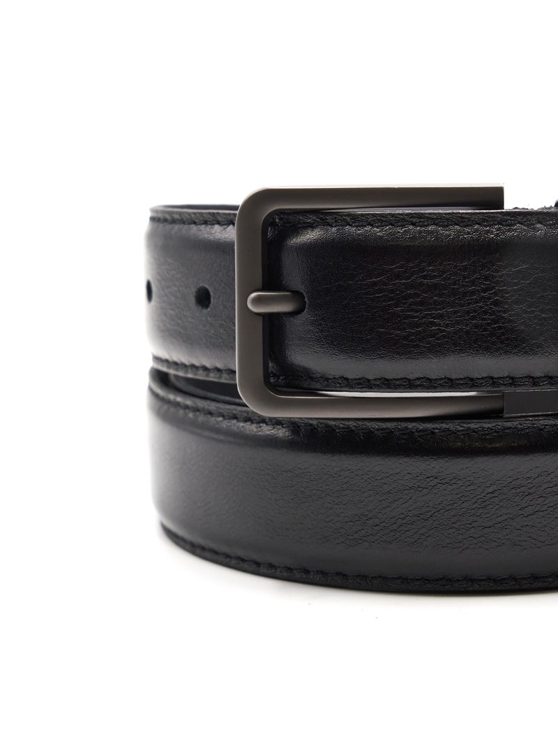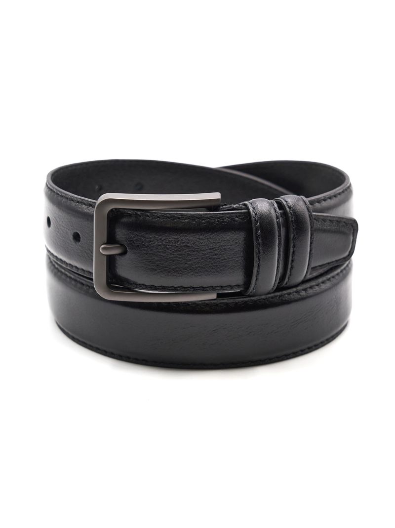 Мужской дутый ремень из натуральной кожи для брюк черного цвета, ширина 35 мм.