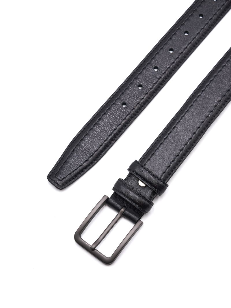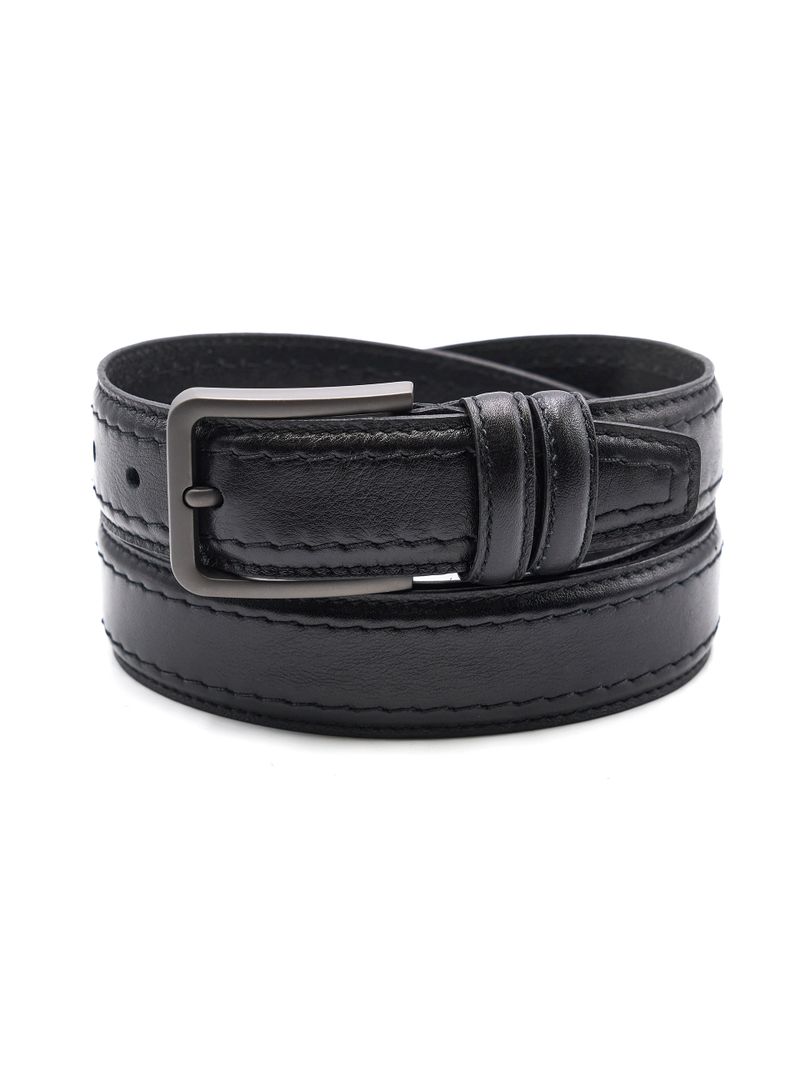 Мужской дутый ремень из натуральной кожи для брюк черного цвета, ширина 35 мм.