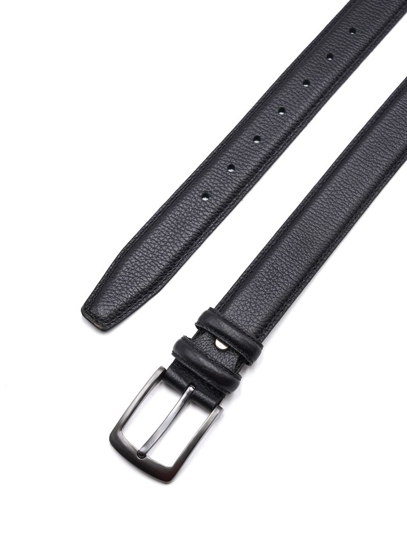 Мужской дутый ремень из натуральной кожи для брюк черного цвета, ширина 35 мм.