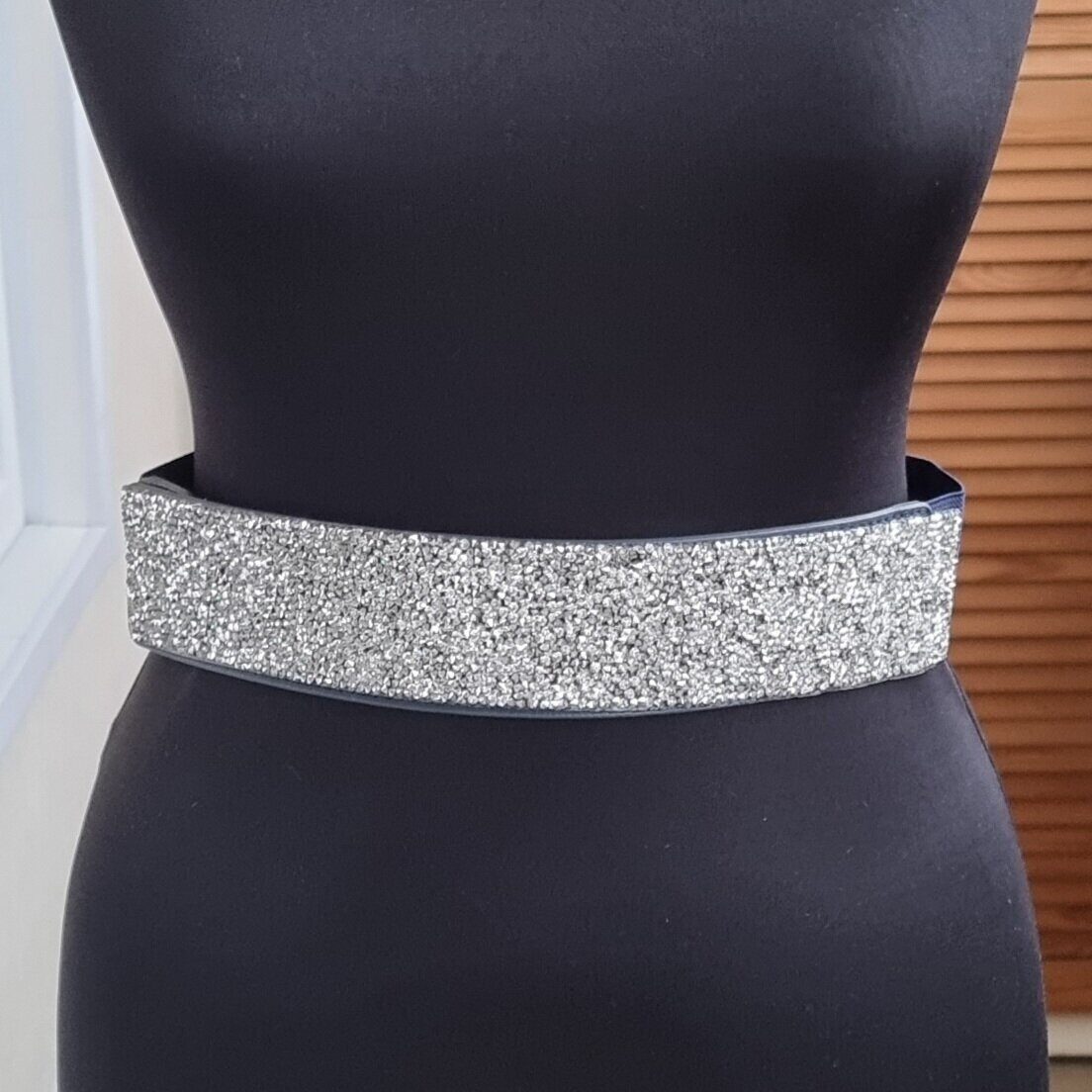 Описание Ремень со стразами - модный аксессуар сезона, которое идеально сочетается с новогодними образами. Мало тянется. Длина: 68-70 см. Ширина: 4,9 см. Материал: экокожа, металл, текстиль, стразы. Вес: 73 гр.