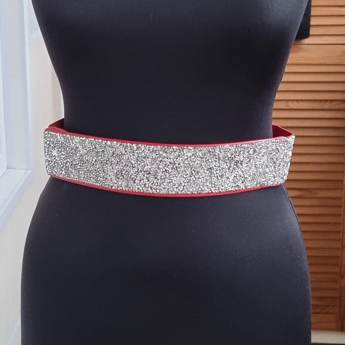 Описание Ремень со стразами - модный аксессуар сезона, которое идеально сочетается с новогодними образами. Мало тянется. Длина: 68-70 см. Ширина: 4,9 см. Материал: экокожа, металл, текстиль, стразы. Вес: 73 гр.