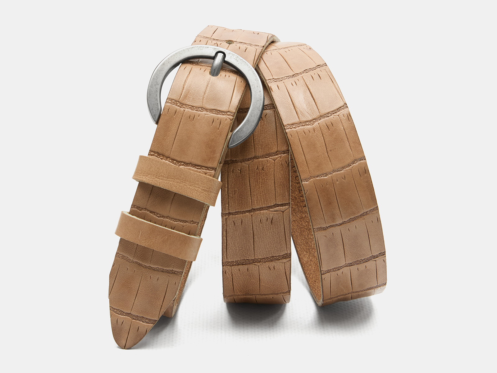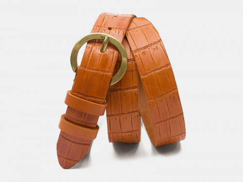 Кожаный бежевый женский джинсовый ремень B30-2174