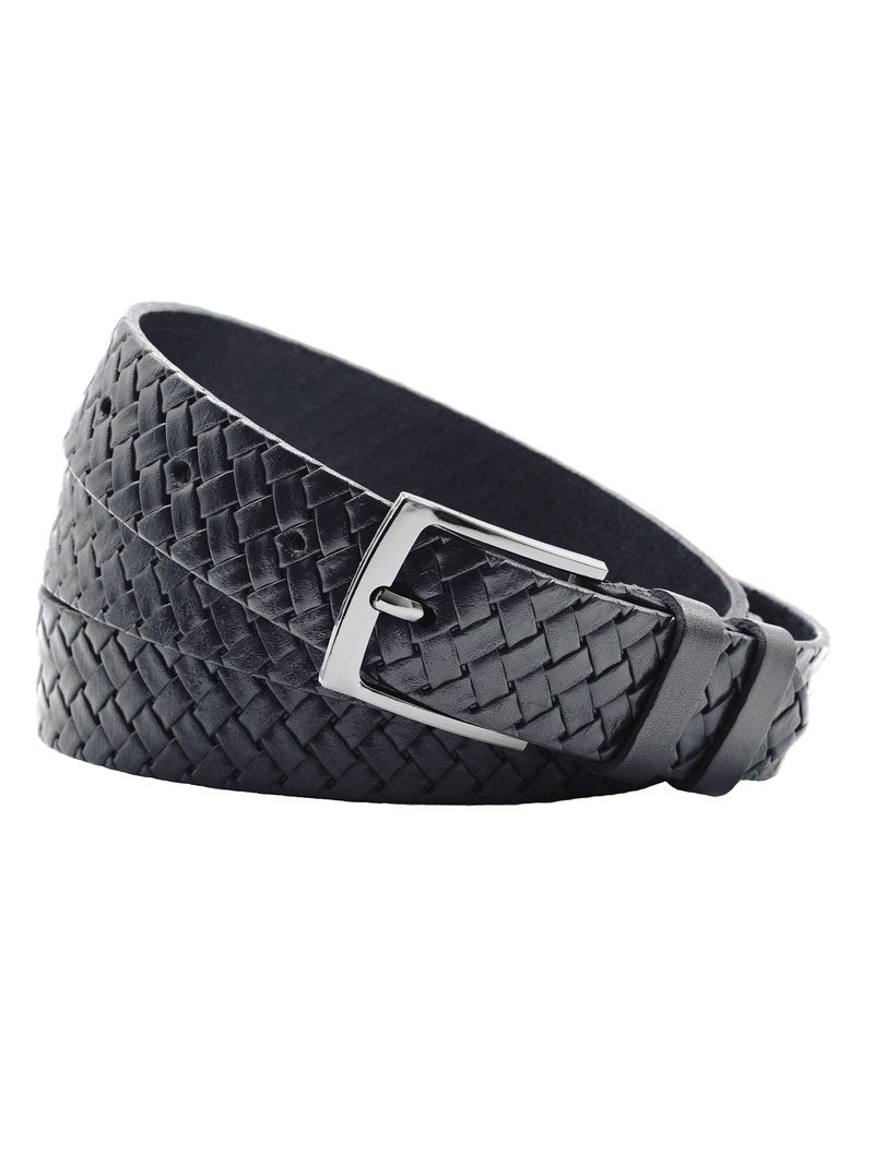 Мужской ремень из натуральной кожи для брюк черного цвета, ширина 30 мм.