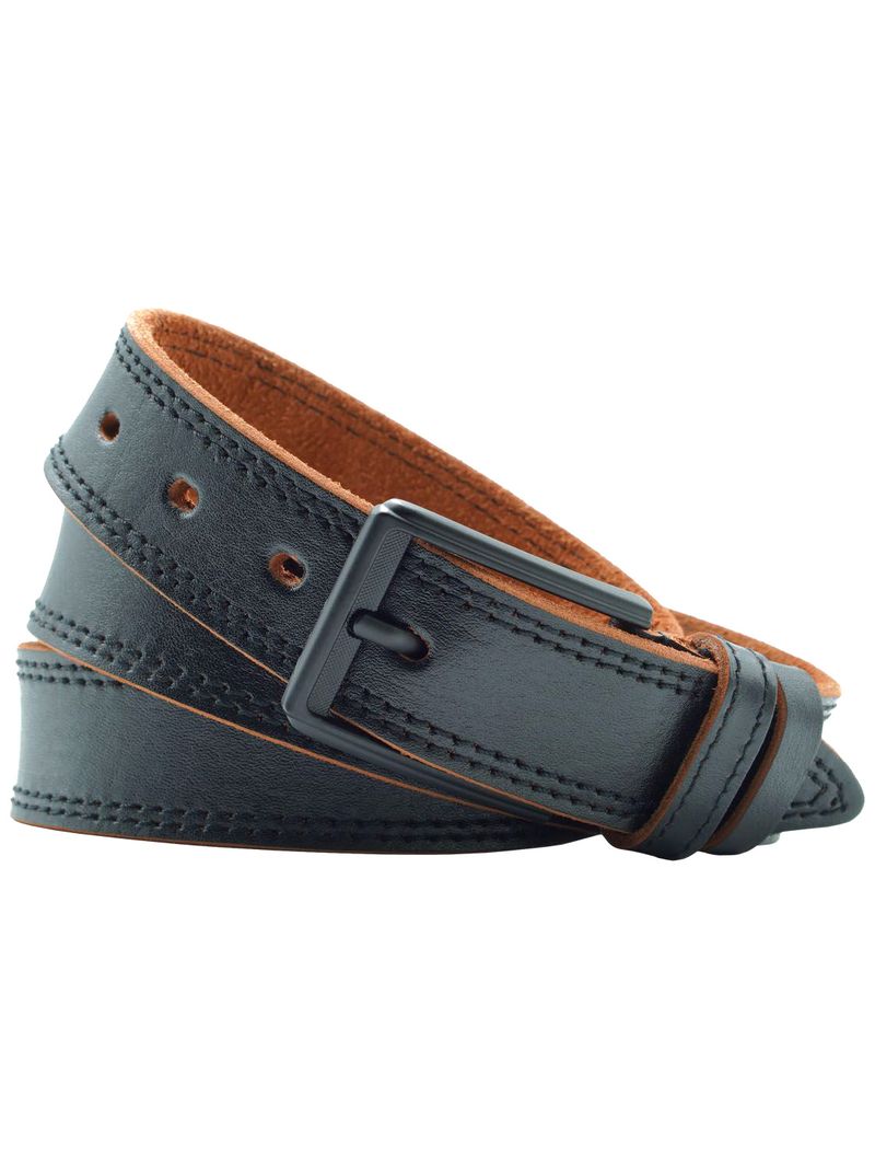 Мужской ремень из натуральной кожи для брюк черного цвета, ширина 35 мм.