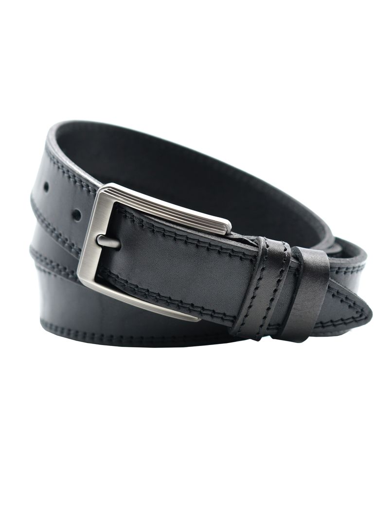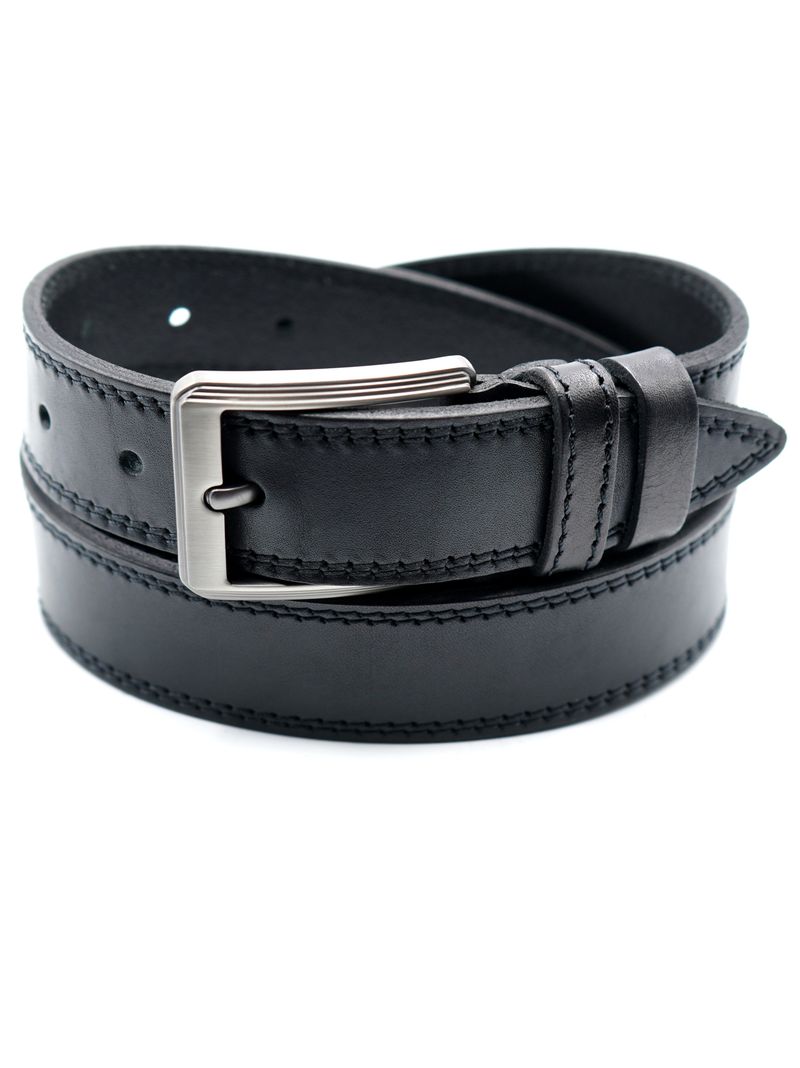 Мужской ремень из натуральной кожи для брюк черного цвета, ширина 35 мм.