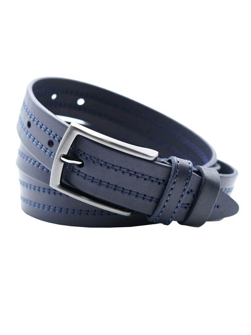 Мужской ремень из натуральной кожи для брюк синего цвета, ширина 35 мм.