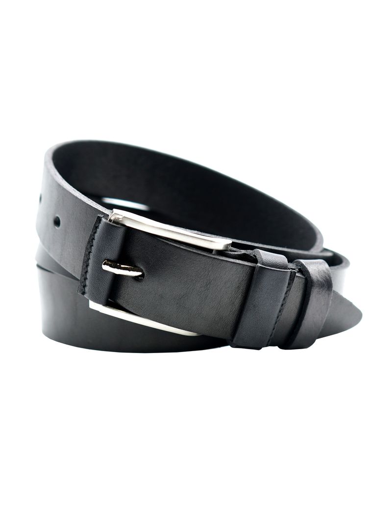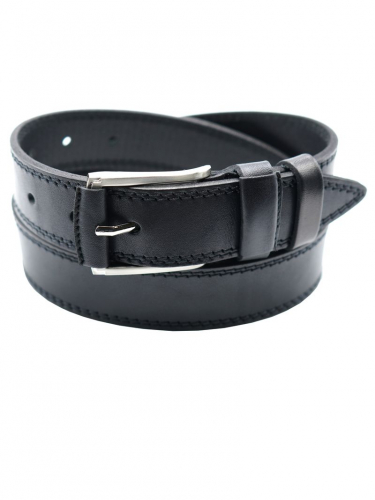 Мужской ремень из натуральной кожи для брюк черного цвета, ширина 35 мм.