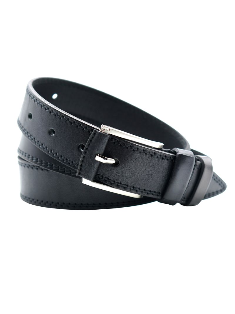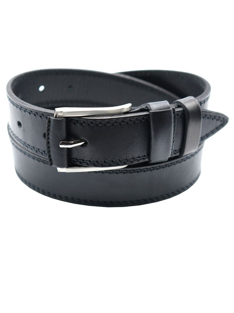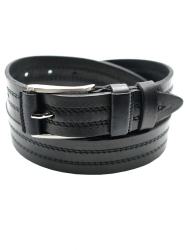 Мужской ремень из натуральной кожи для брюк черного цвета,  ширина ремня 35 мм.