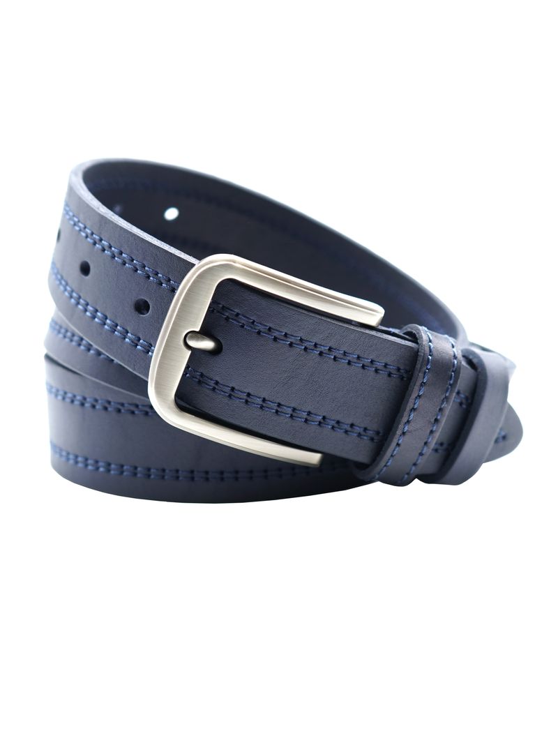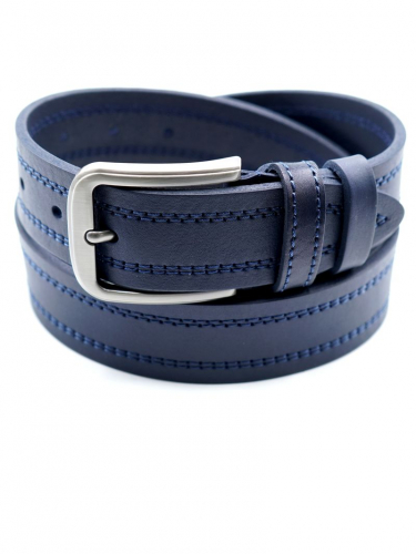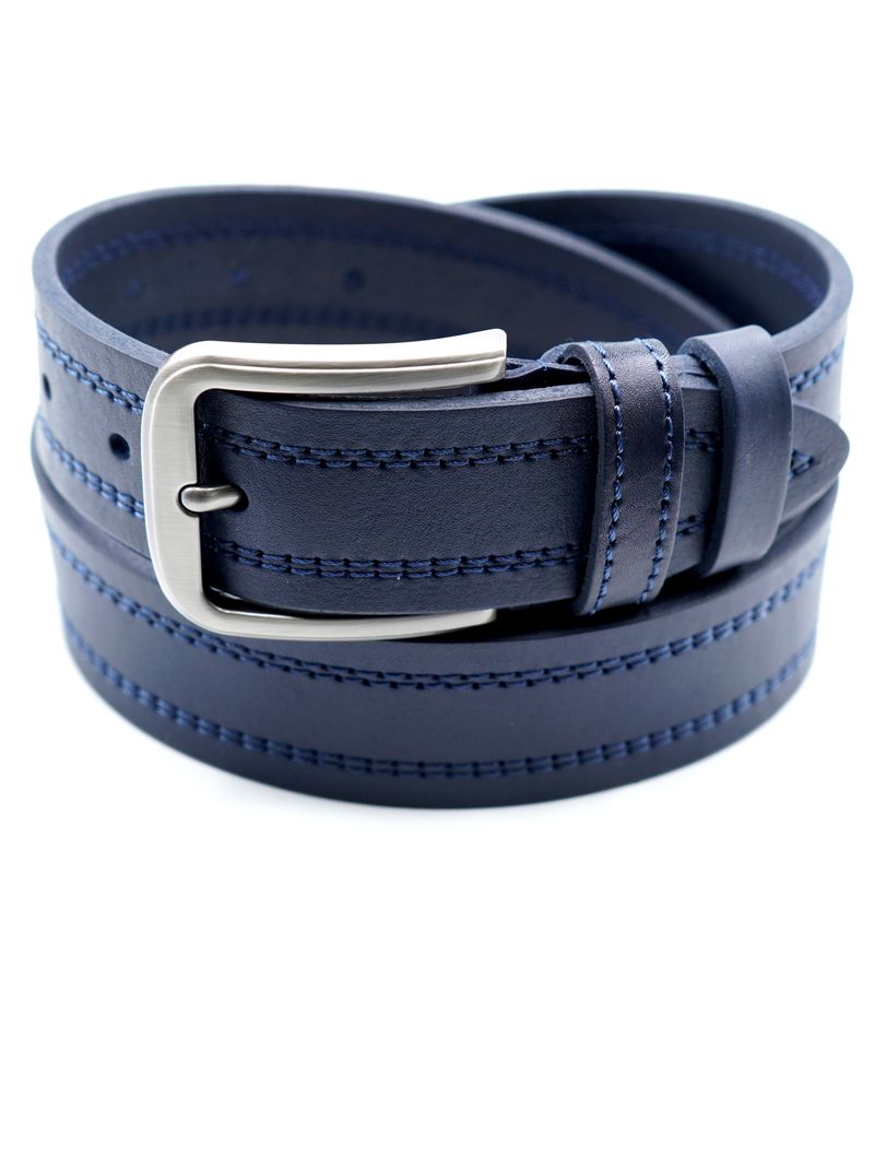 Мужской ремень из натуральной кожи для джинсов синего цвета, ширина 40 мм.