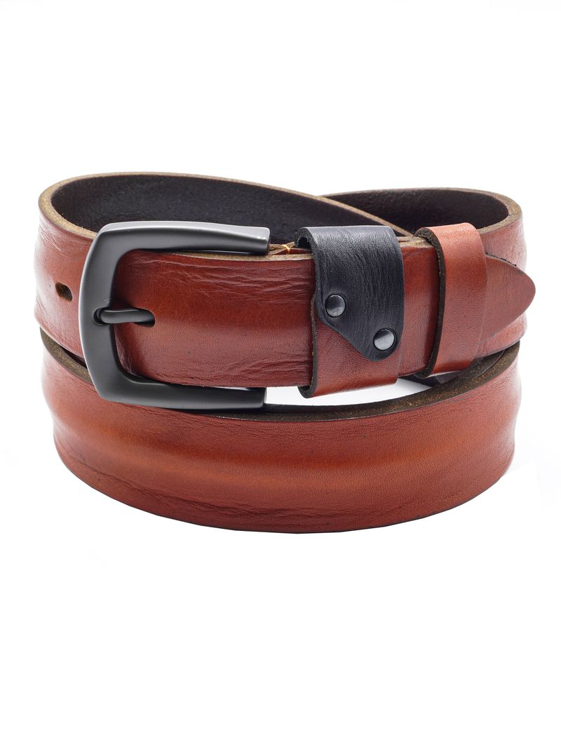 Мужской ломаный ремень из натуральной кожи для джинсов рыжего цвета, ширина 40 мм.