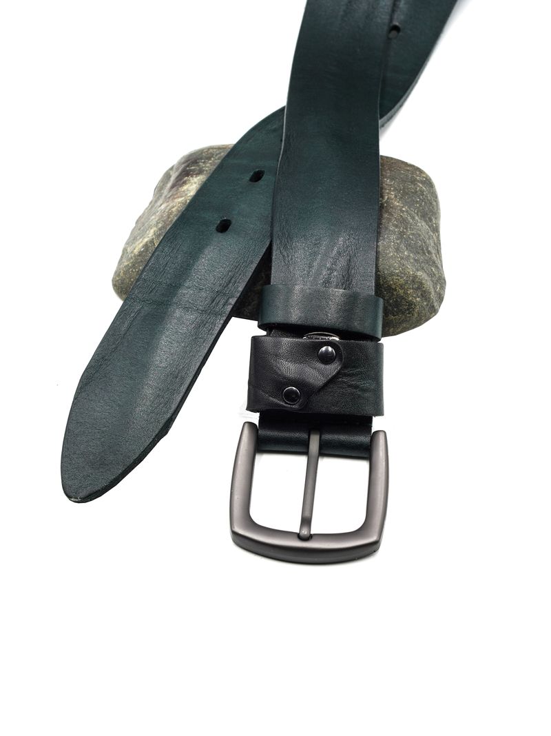 Мужской ломаный ремень из натуральной кожи для джинсов темно-зеленого цвета, ширина 40 мм.