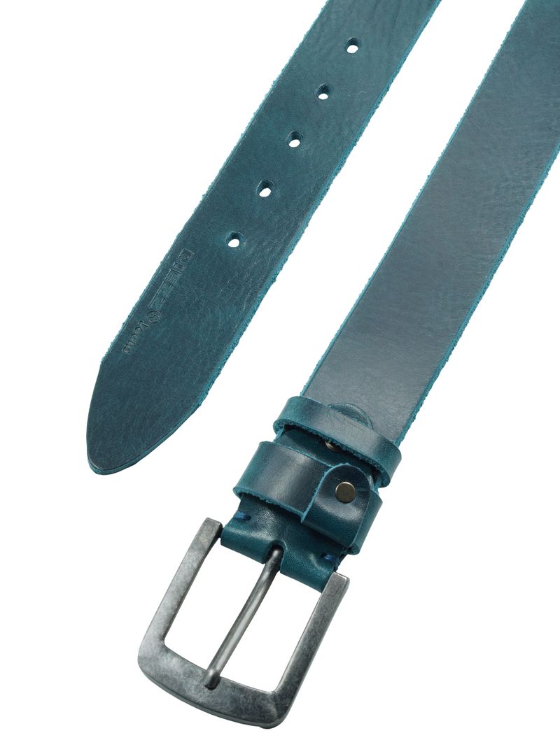 Мужской ремень из итальянской натуральной кожи для джинсов бирюзового цвета, ширина 40 мм.