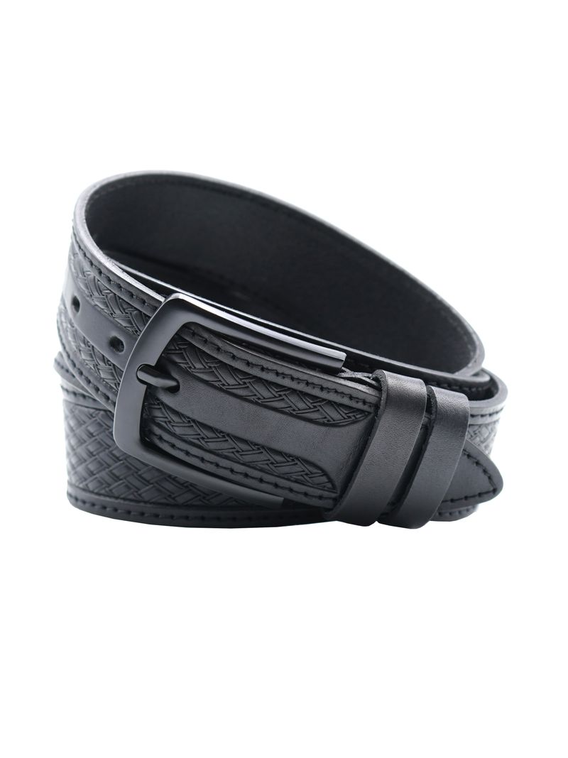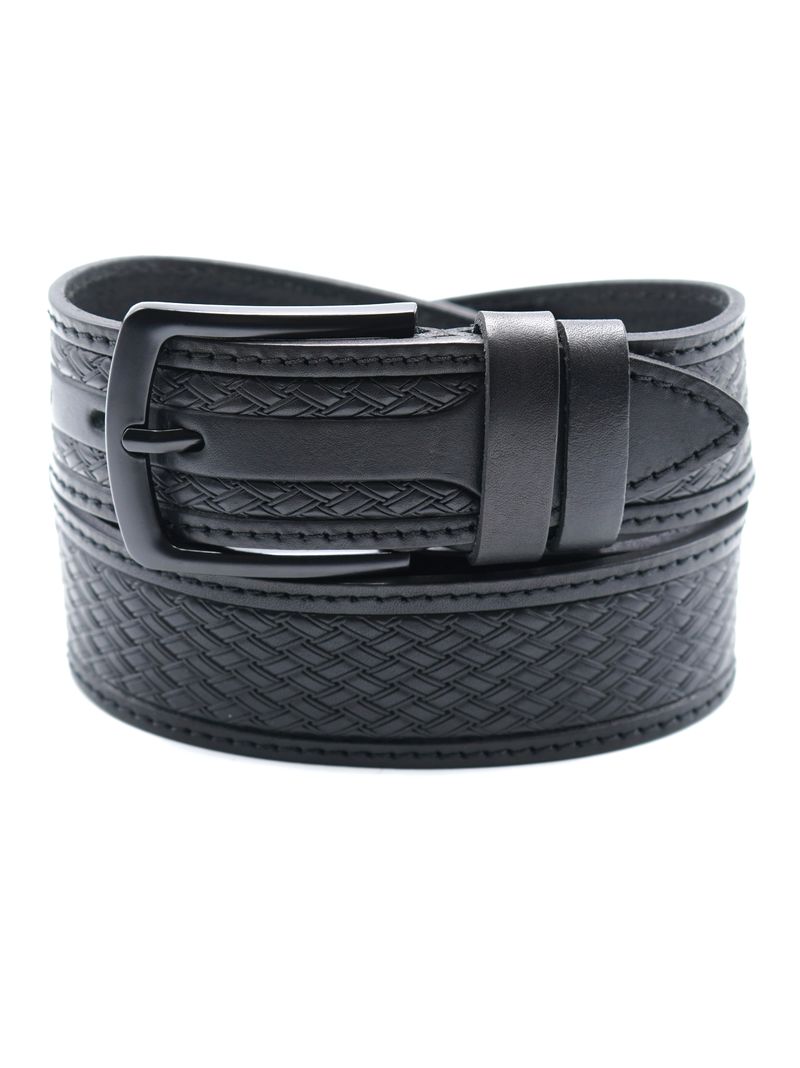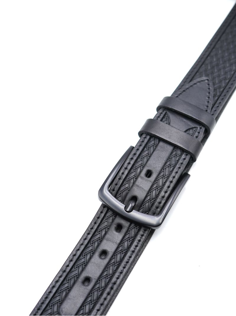 Мужской ремень из натуральной кожи для джинсов черного цвета, ширина 45 мм.