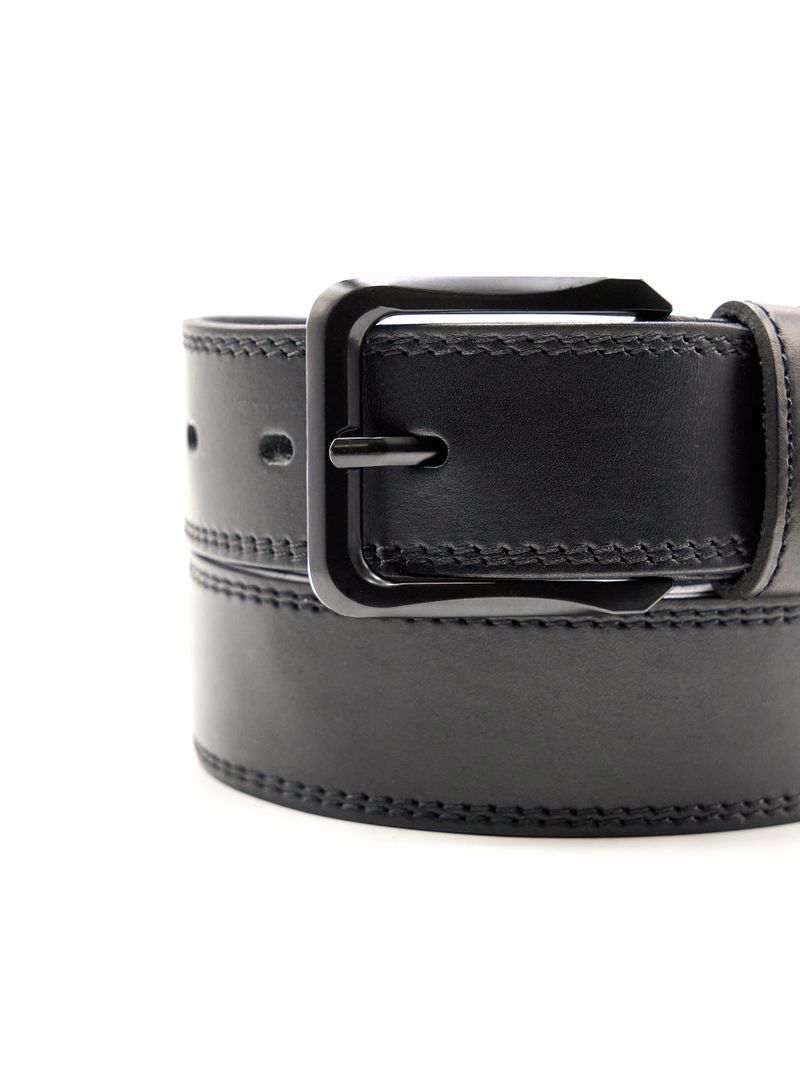 Мужской ремень из натуральной кожи для джинсов черного цвета, ширина 45 мм.