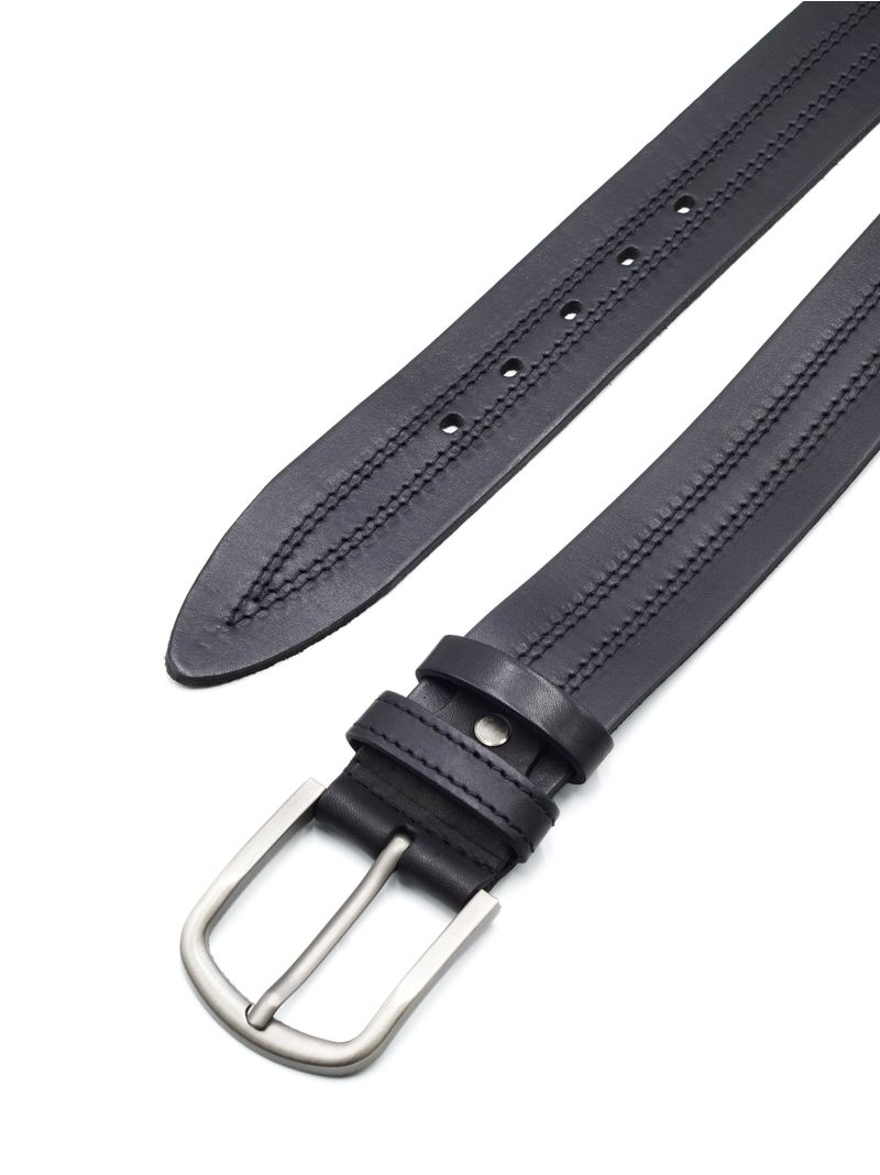 Мужской ремень из натуральной кожи для джинсов черного цвета, ширина 45 мм.