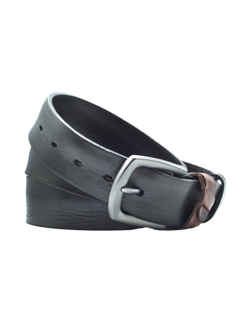 Мужской ремень из натуральной кожи для джинс черного цвета, ширина 40 мм.