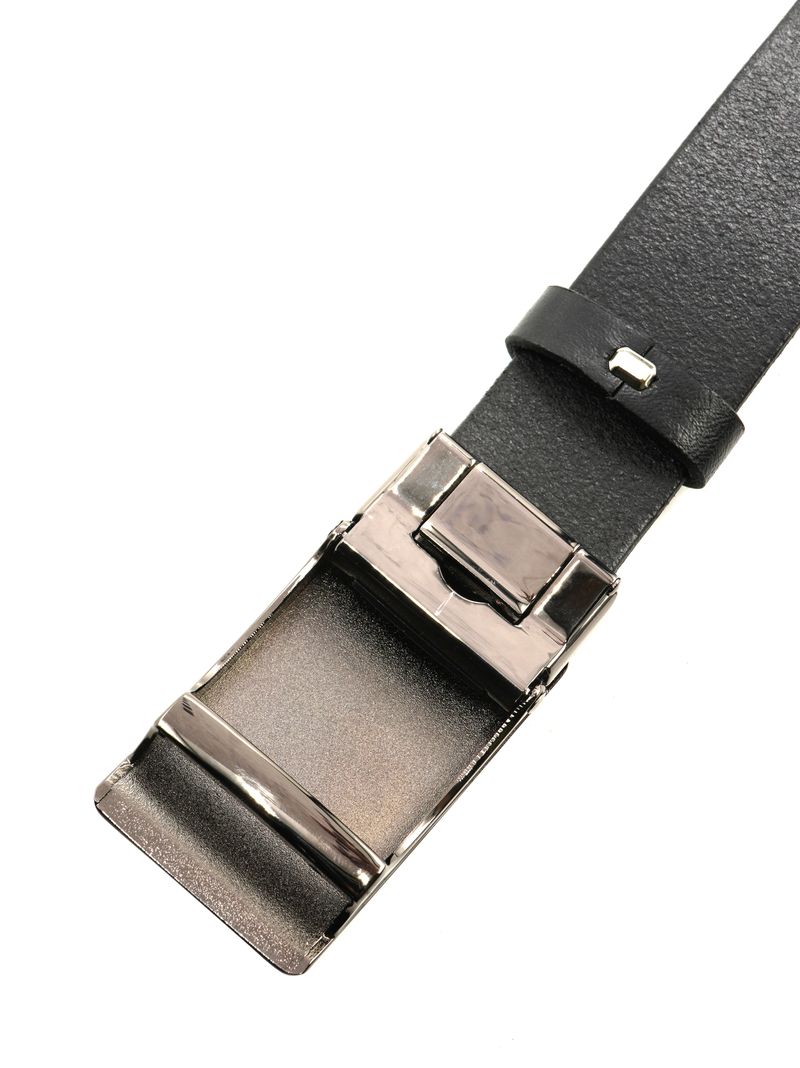 Мужской ремень из натуральной кожи для брюк черного цвета, ширина 35 мм, пряжка-зажим.