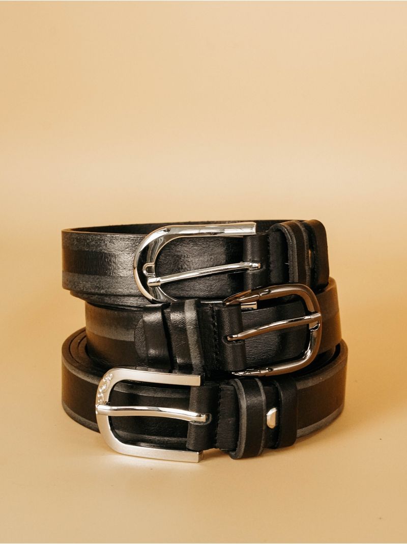 Женский ремень из натуральной кожи для джинсов черного цвета, ширина 25 мм.